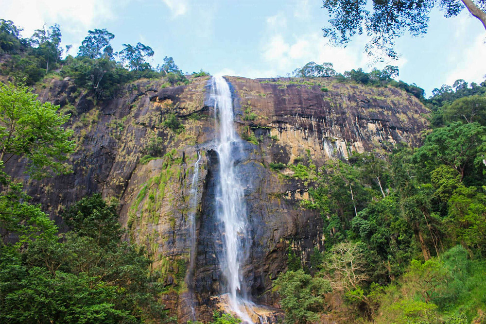 Just outside of Ella, on the road winding south towards Wellawaya, lies one of Sri Lanka’s most easily accessible attractions: Ravana Falls. According to local legend, King Ravana is said to have kidnapped princess Sita and hidden her in the secrecy of the forest-protected caves behind the waterfall, to avenge the slicing off of his sister’s nose by Sita’s husband (Rama). Today, the 25,-high, multi-tiered waterfall is less hidden, given its location right next to the road into Ella from the south, but it’s no less impressive, particularly if you make the effort to hike further up to the second and third-tier falls. From the top of Ravana falls the views over the valley below are majestic, and worth the somewhat tough and precarious hike up. To get to the top, follow the tracks to the right of the waterfall and slowly make your way up, following the well-trodden paths.
