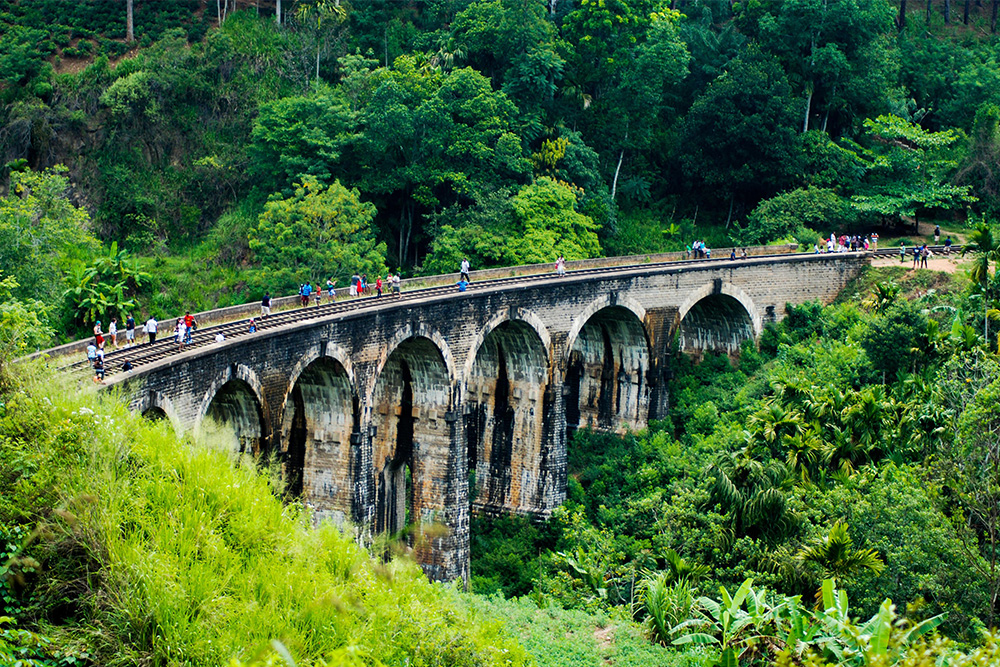 The Nine Arch Bridge is flanked by verdant forests and tea plantations, standing proudly across the valley below. On misty days, low cloud hangs in the valley, giving the whole area a moody, mystical feel. Completed in 1921, the Nine Arch Bridge is built entirely out of brick, rock and cement, with no metal used in its construction – an engineering feat back in those days. Spanning 91 meters at a height of 24 feet, the bridge is on the famous Kandy to Bandarawela (via Ella) train line, with trains passing around five times a day, depending on the ever changing Sri Lankan train timetable. Although train times are notoriously unreliable in Sri Lanka, trains tend to pass the Nine Arch Bridge around the following times: 9:30, 11:30, 15:30, 16:30, and 17:30