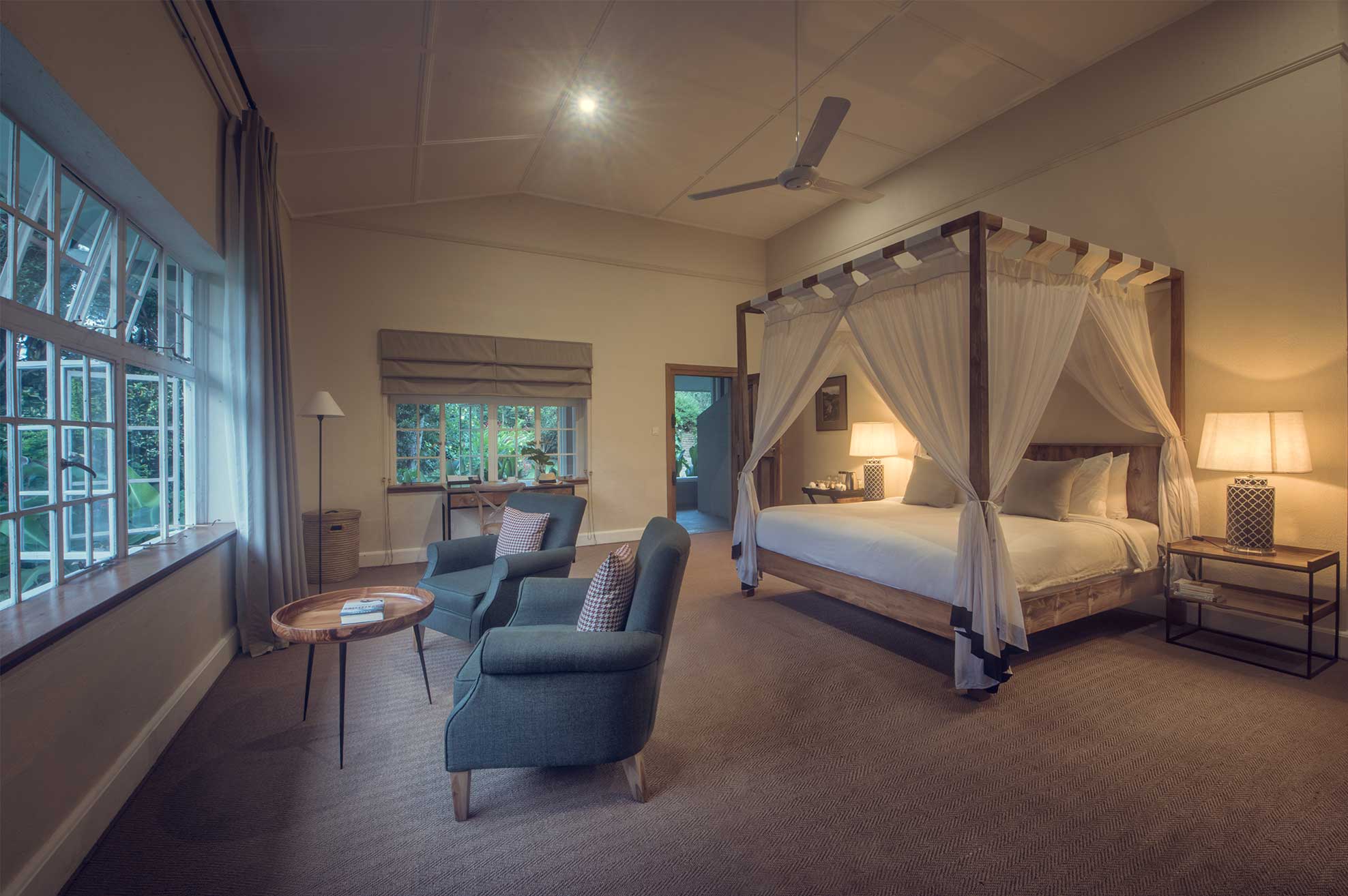 perched on a tea-fringed hill near Ella. Dating back to the colonial era, the bungalow epitomises its legacy yet indulges