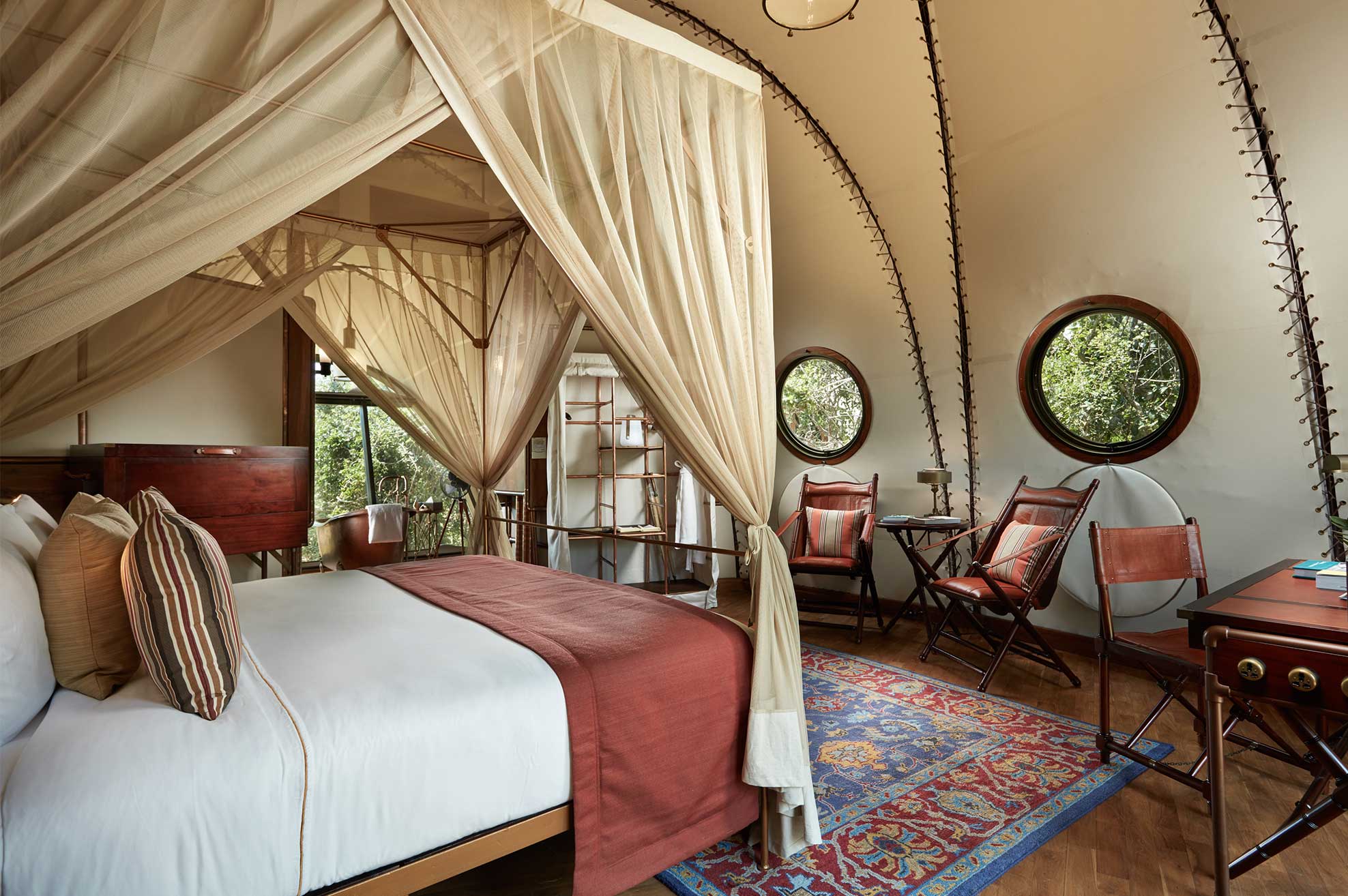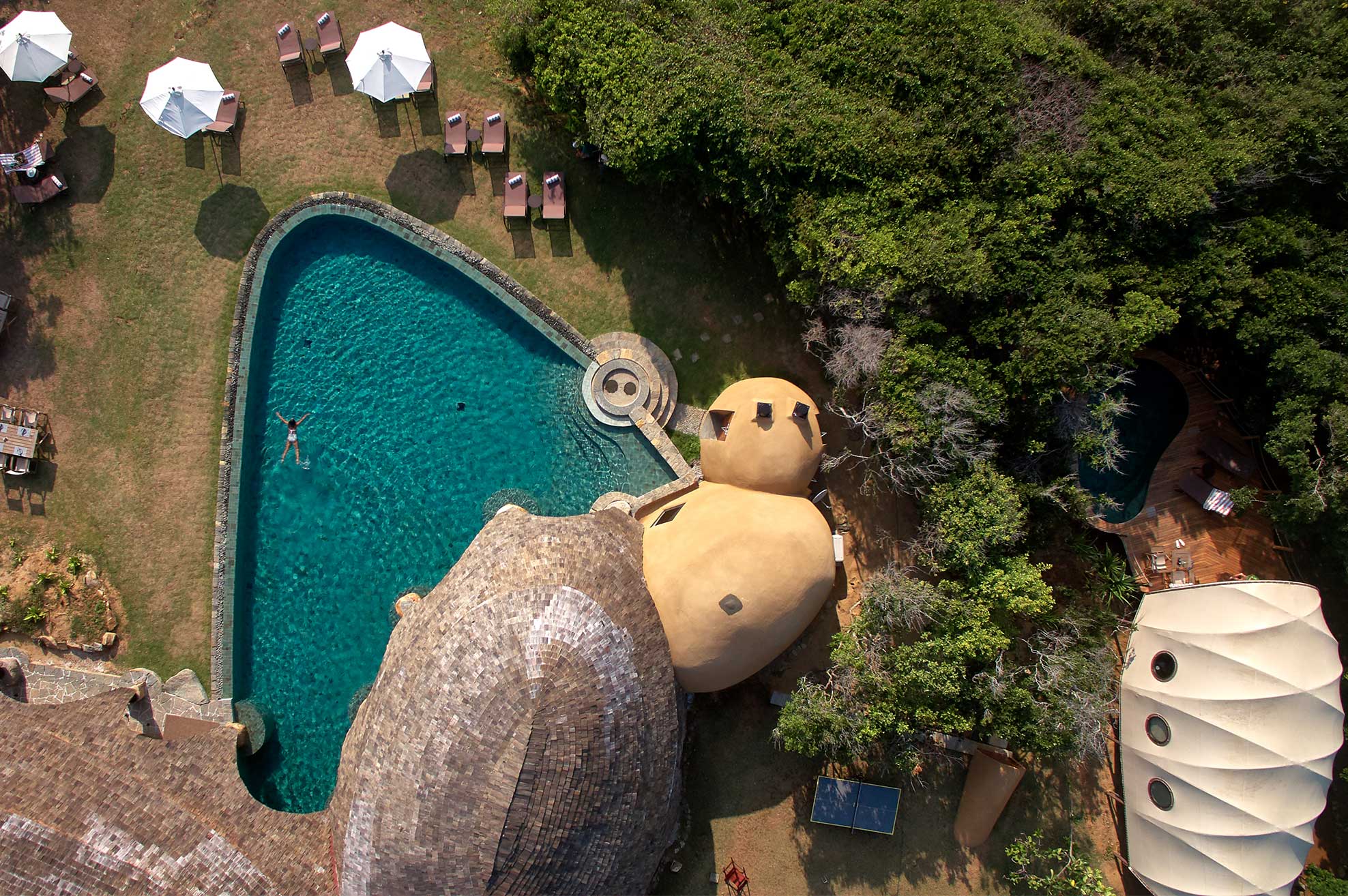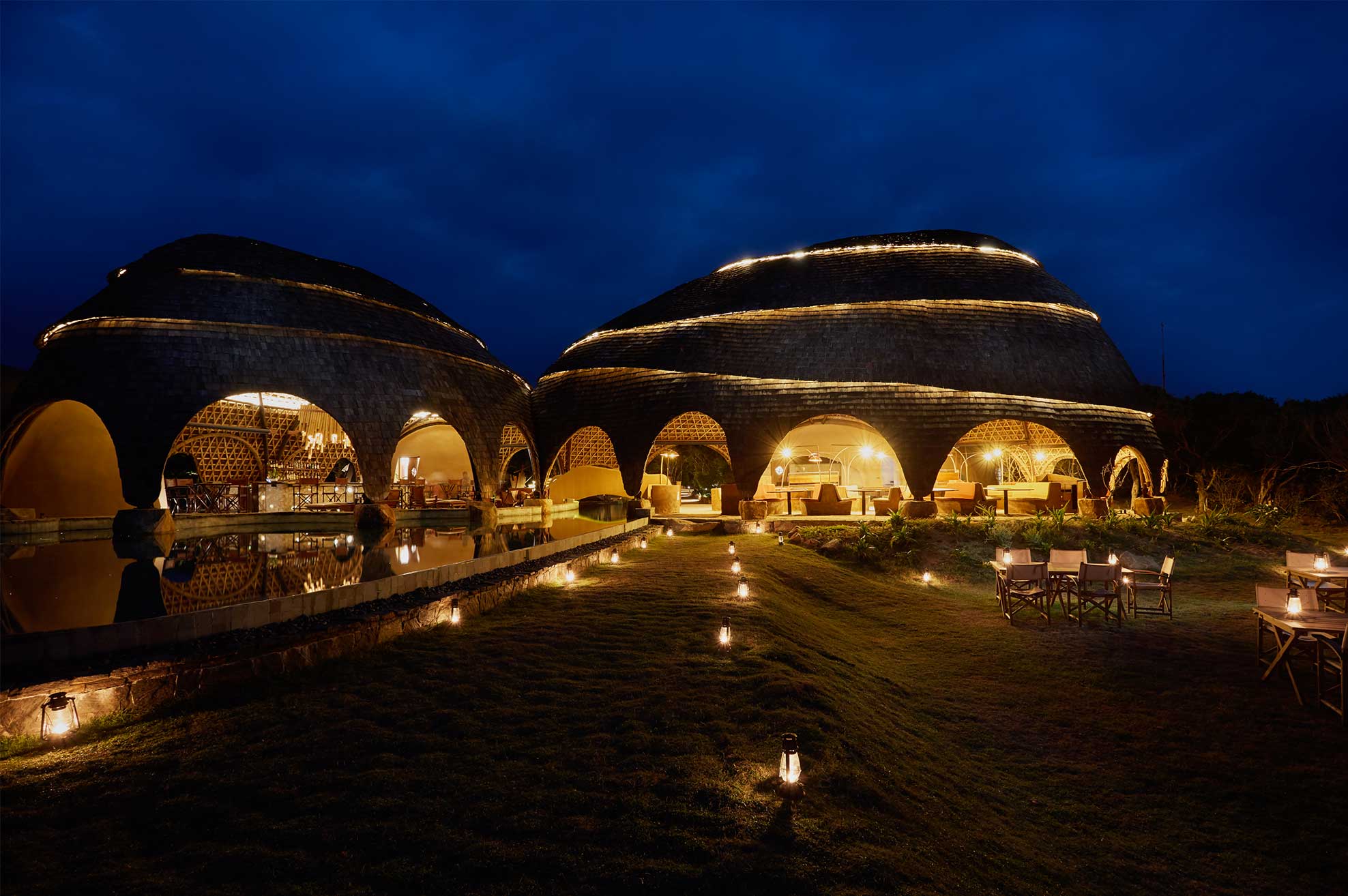While our main buildings, made of bamboo, blend in with the distinctive rock formations of Yala, our uniquely shaped tents, called Cocoons & Urchins, truly represent a luxury five star resort room under canvas, offering all amenities including air-conditioning.