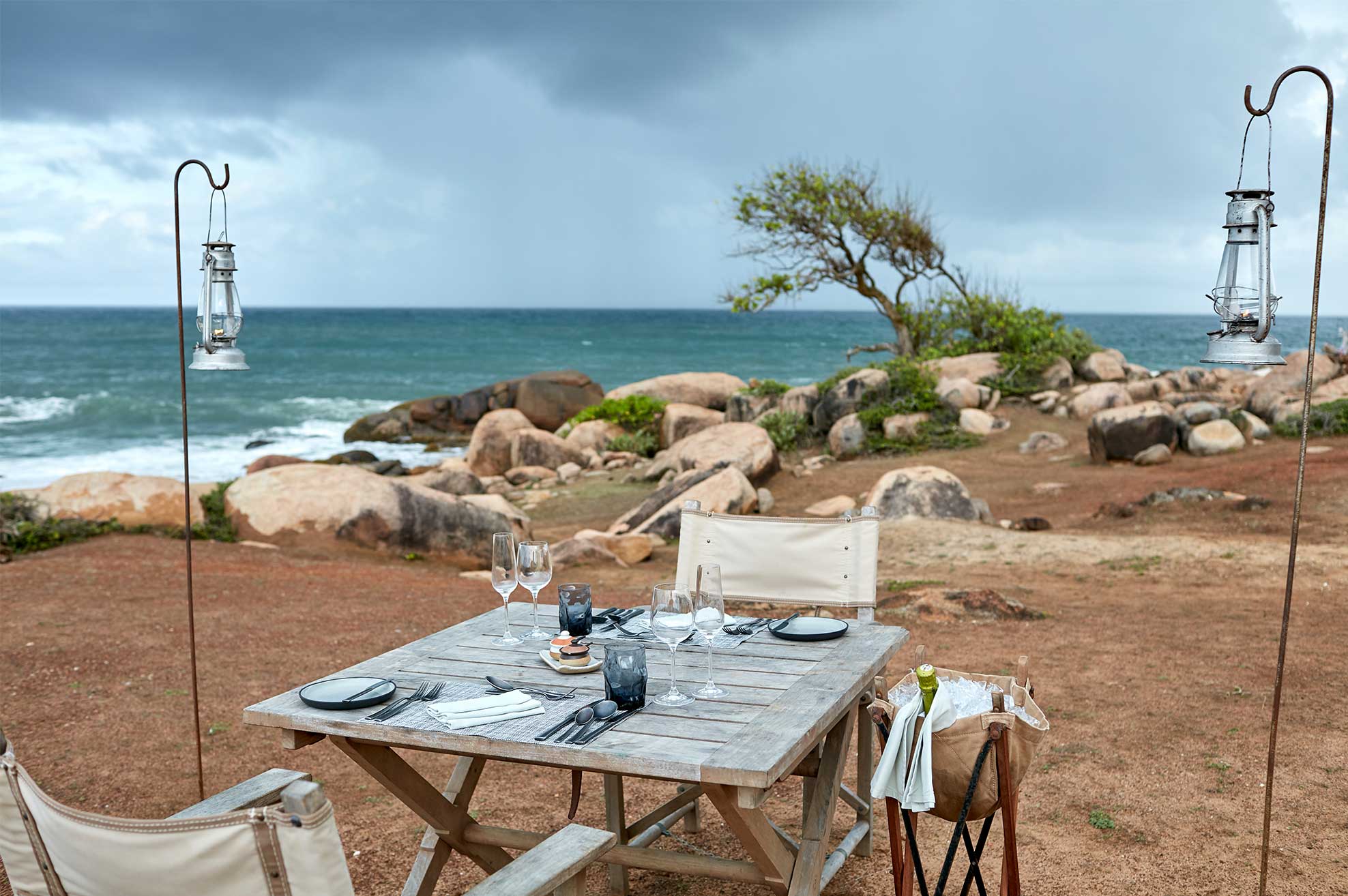 Wild Coast Tented Lodge is adjacent to the Yala National Park, renowned for its dense leopard population. This spectacular luxury tented camp is situated in a stunning location where the jungle meets a pristine beach, overlooking the blue waters of the Indian Ocean.