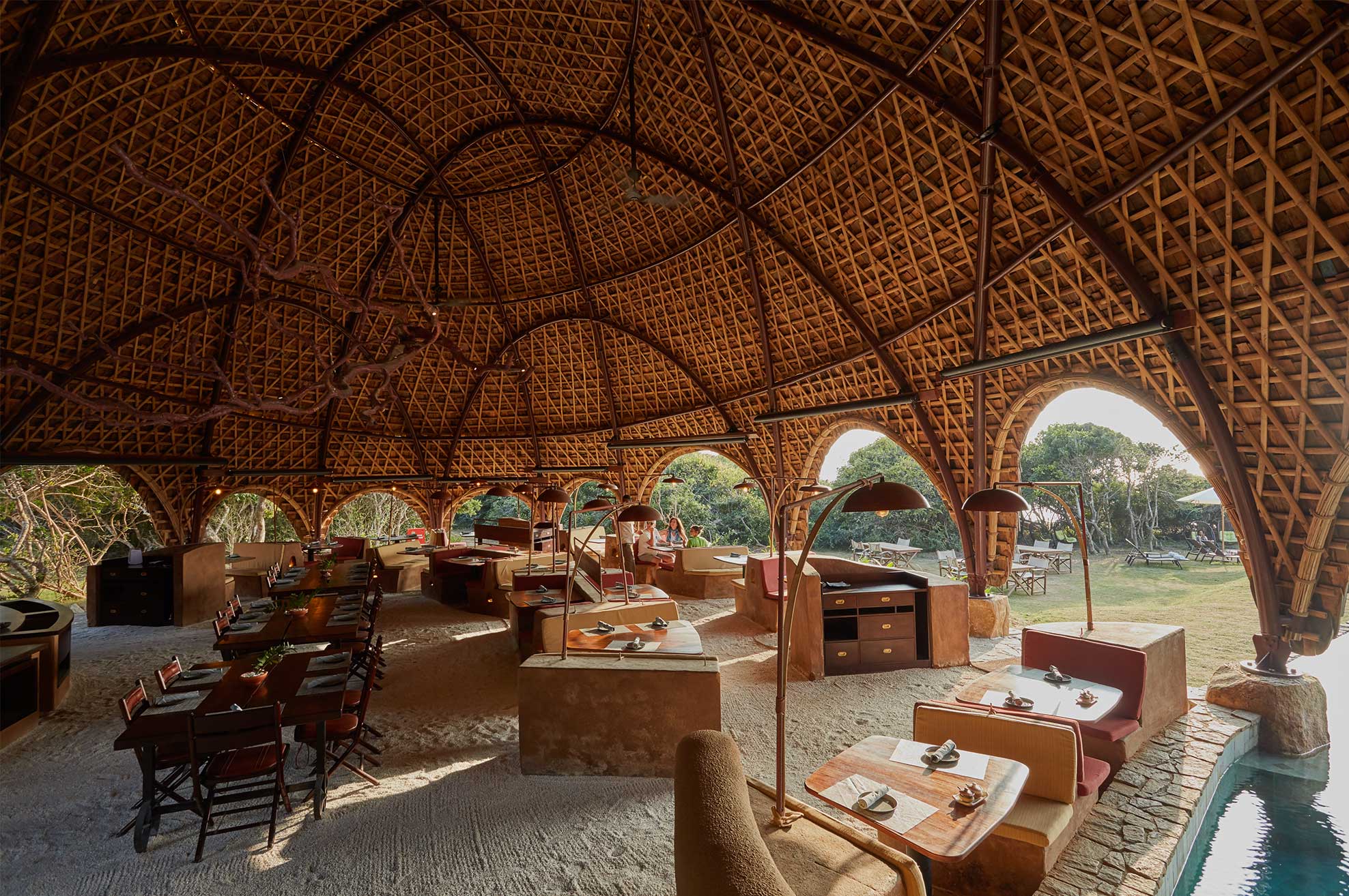 The open-air bamboo-clad Bar and Dining Pavilion – designed to mirror the boulders scattered across the golden beach beyond – wrap around the resort’s enormous free-form swimming pool. Guests can enjoy creative daily-changing menus of authentic Sri Lankan cuisine in the restaurant, as well as sundowner cocktails and picnics al fresco on the sand dunes, watching dusk settle over the Indian Ocean. The library doubles up as an educational centre where guests learn about the wildlife in the park and watch documentaries, further explained by the lodge’s expert guides.