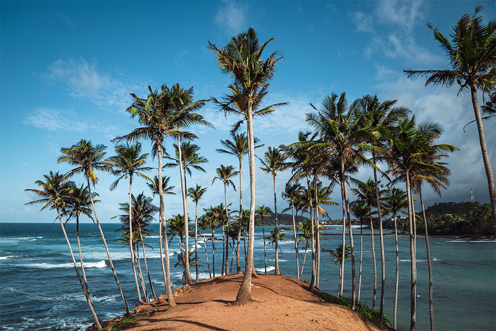 Coconut Tree Hill is one of the most Instagrammable spots in Sri Lanka and one of the top things to do in Mirissa. The private coconut farm is just a 15-minute walk from Mirissa Beach and offers some of the best views in the area! Once you reach the top of the hill, the headland stretches out ahead of you, allowing you spectacular views over the ocean through the many leaning palm trees. We recommend going at sunrise to take photos when there are fewer people around. If the weather is good and the tide is low, you can walk along the beach. Be aware that at certain times you may need to walk through water. If not, you can walk along the road that hugs the coastline. (Tip: True to its name, there are coconuts in the trees at Coconut Hill. Be careful, as they can fall, so never stand directly under the trees.)